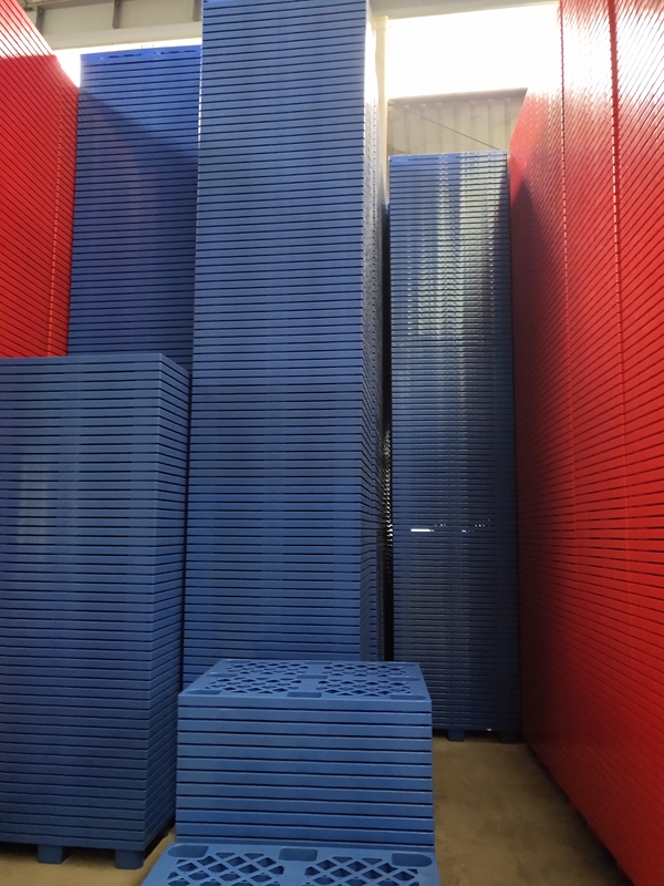 3、加钢管的塑料托盘可以辅助托盘在货架使用,提高货架的承载。但是加钢管的托盘在货架使用,仅仅可以提高托盘的承载,长期使用、由于货架使用,托盘的受力点跨度较大,会出现一定的弯曲度。加钢管的塑料托盘、由于钢结构弯曲后很难恢复,造成托盘长时间的货架使用,很难再恢复。