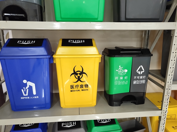 分类塑料垃圾桶主要包括有三种,可回收、不可回收和有毒物质。